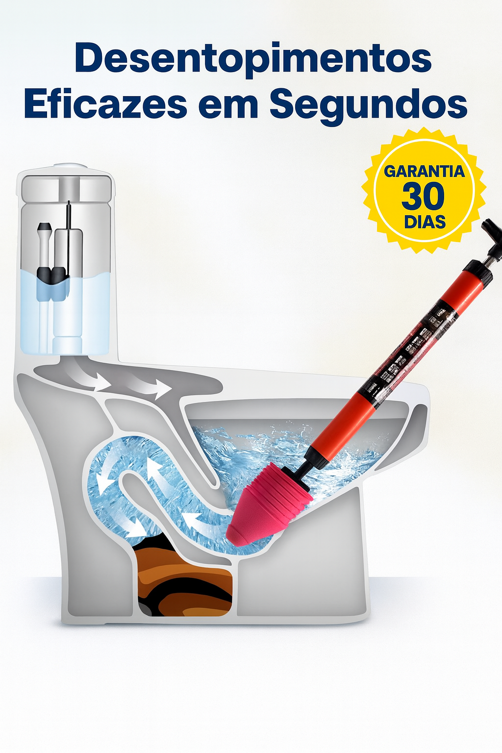Resultado: entupimento eliminado instantaneamente, sem esforço e sem sujar.